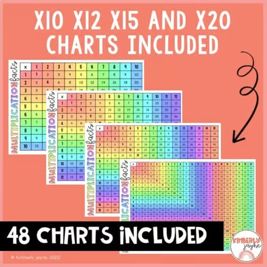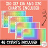 🌈 48 Rainbow Multiplication Charts – x10, x12, x15 & x20 Tables