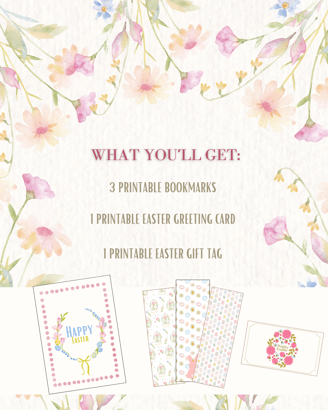 printable Easter Stationery Set: Greeting Card, Gift Tags & Bookmarks