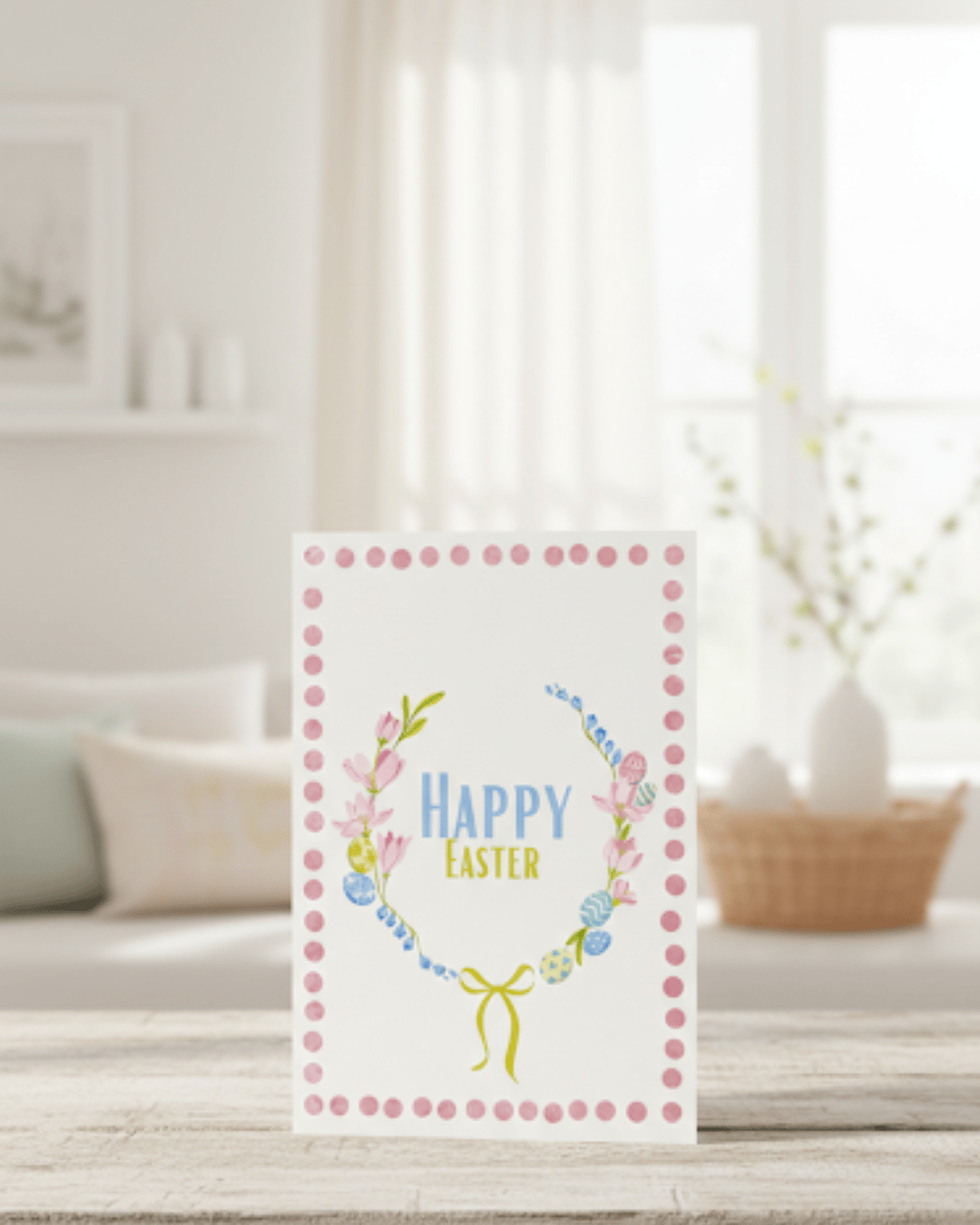 Elegant Greeting Card: A beautiful way to share your Easter wishes, featuring a minimalist floral wreath design.
