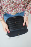 Pochette arrondie en cuir croco noir