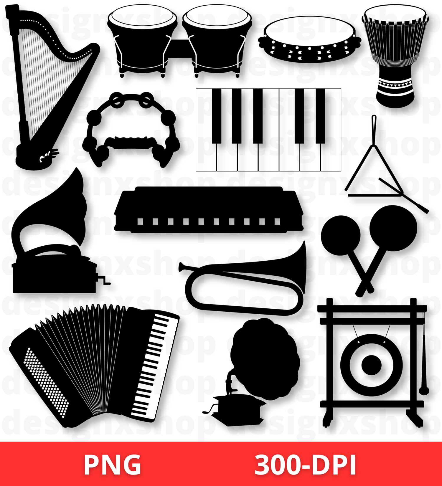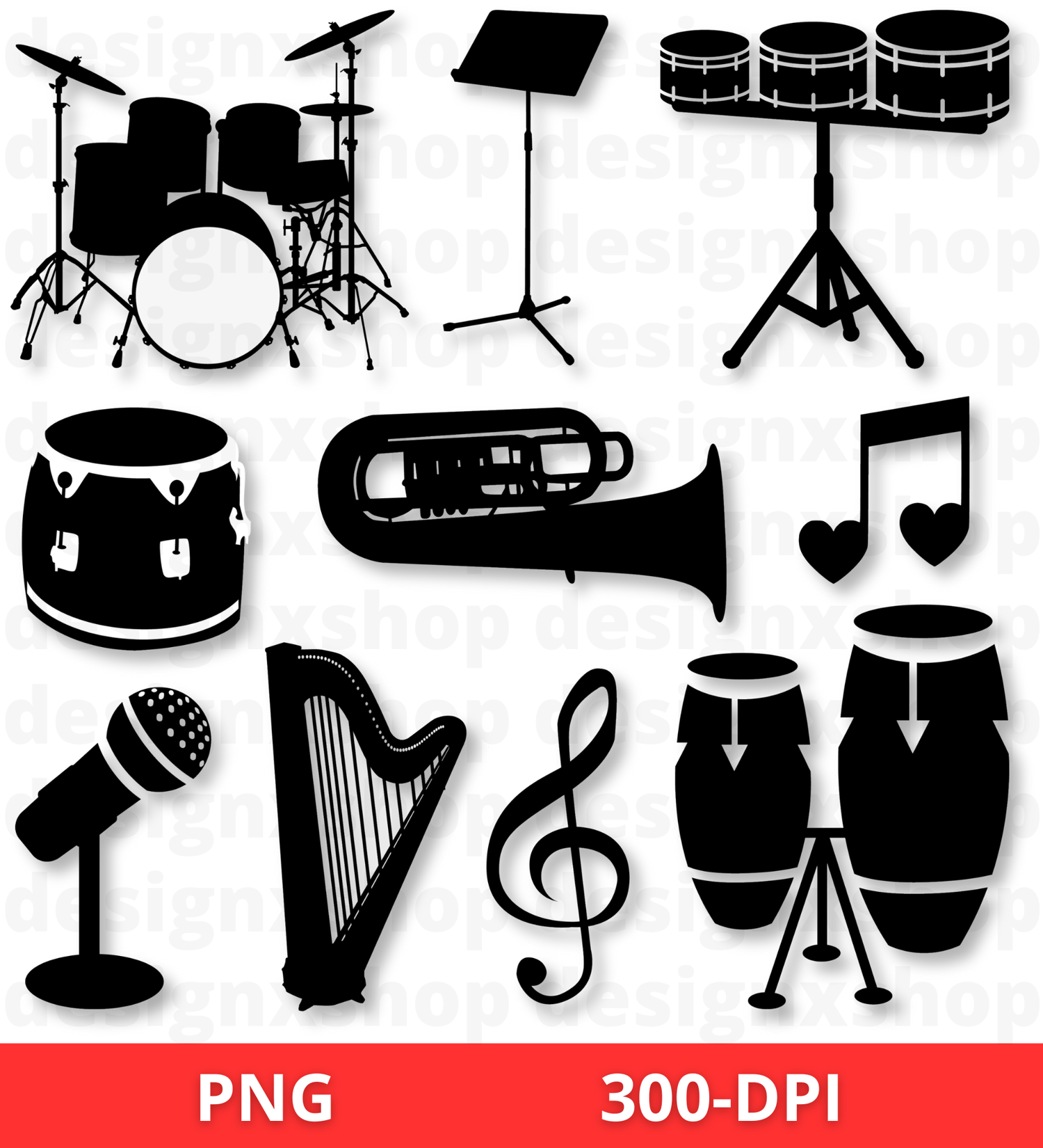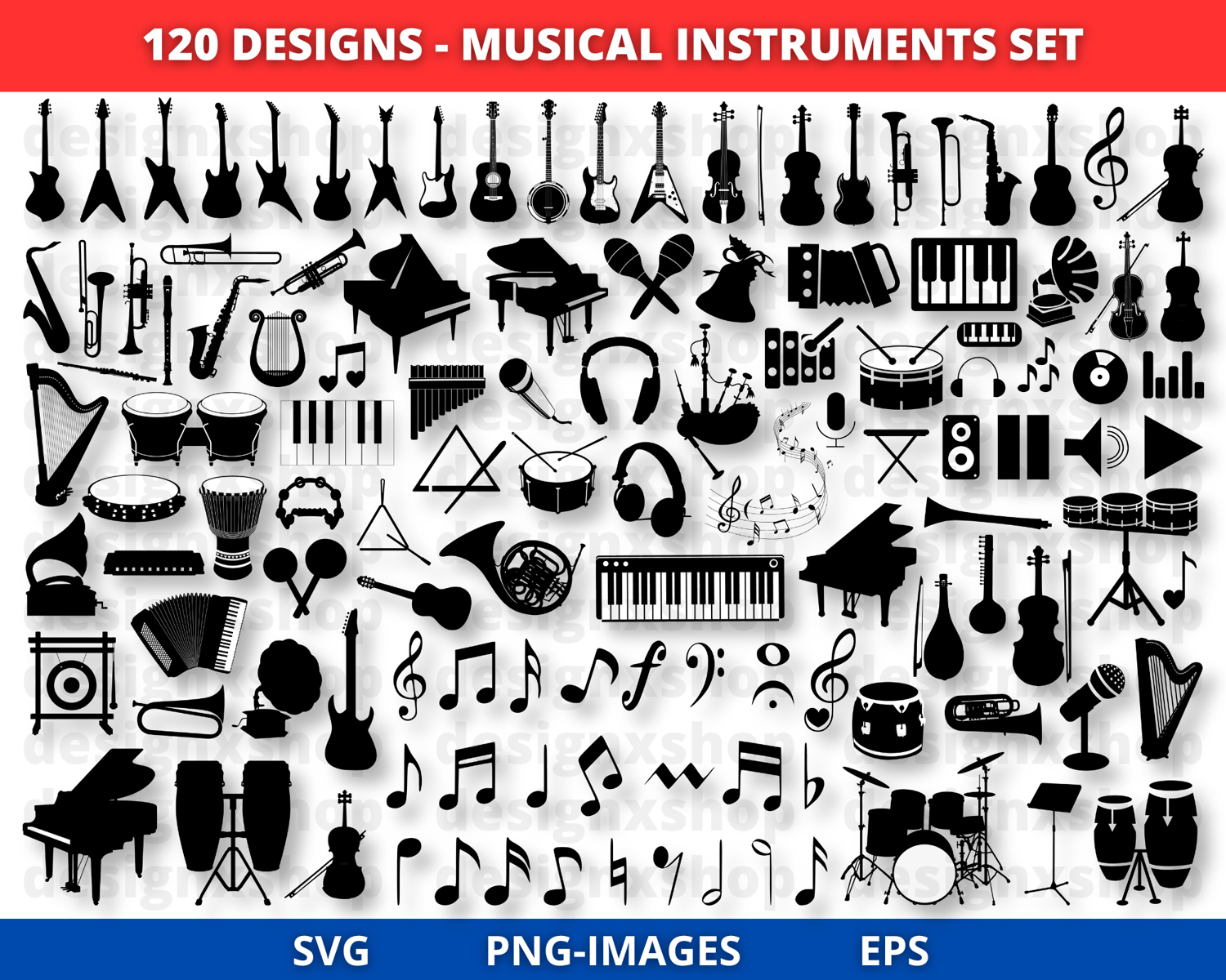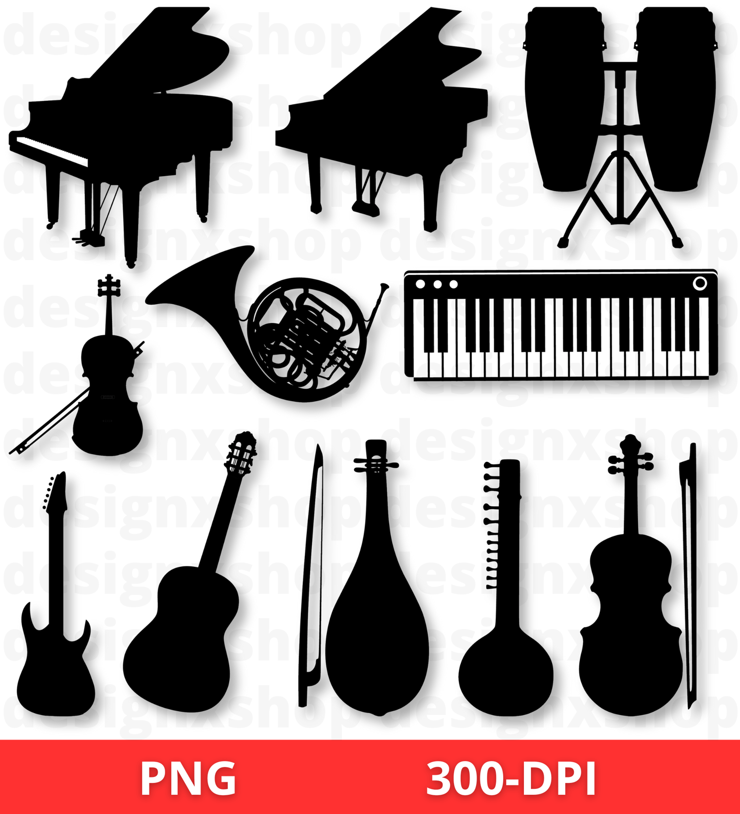 Musical instruments SVG, musical instruments clipart, music symbols svg, music notes svg, guitar note Svg, musical notes clipart, Silhouette