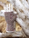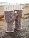 The hat comes in five sizes (from a 116 stitch cast on to a 148 stitch cast on), and the mitt in six (from a 40 stitch cast on to a 60 stitch cast on) and both are written for five gauges (from five and a half to seven and a half stitches per inch in half stitch increments). That means you can use just about any weight of yarn from fingering up through worsted, and there will be a size to fit pretty much anyone's head or wrist. Basically anything that will give you a fabric with a drape you like somewhere in that range of gauges will work.