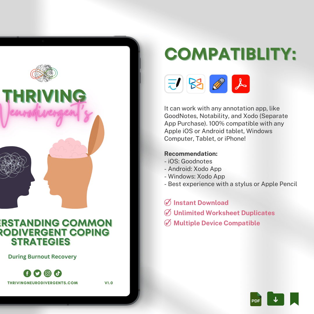 Embark on a transformative journey with our "Understanding Coping Strategies During Burnout" Mini Workbook, a comprehensive guide crafted to reshape your perspective on coping mechanisms. This enlightening resource is dedicated to individuals navigating the complexities of neurodivergence and burnout, offering a fresh and compassionate viewpoint.