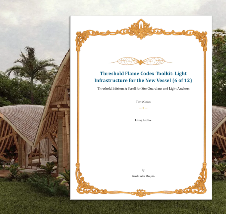 This T4 Codex, part of the Threshold Flame Codex Toolkit Series, serves as a living blueprint for creating sacred, energy-efficient habitats aligned with the land's Oversoul. Emphasizing sacred geometry and biocentric design, it guides the development of intentional communities, healing spaces, and light technologies, promoting harmony with nature and soulful stewardship.