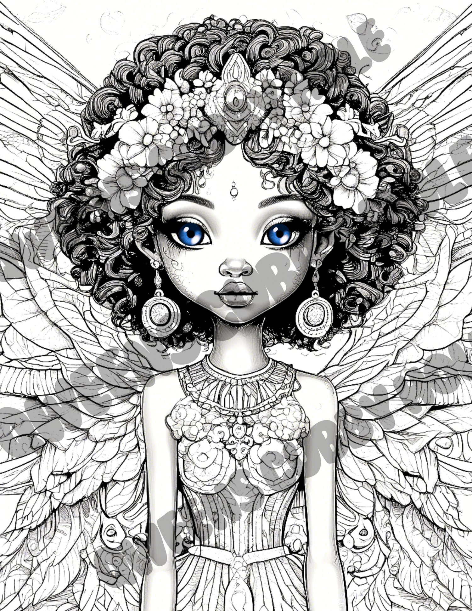 COLORING PAGE - enhanced FAIRY GIRL PRETTY 2