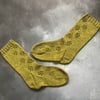 100g of yarn will make up to a UK size 10 of these socks. Adding a 20g mini-skein as a contrast colour will allow you to make a larger size.