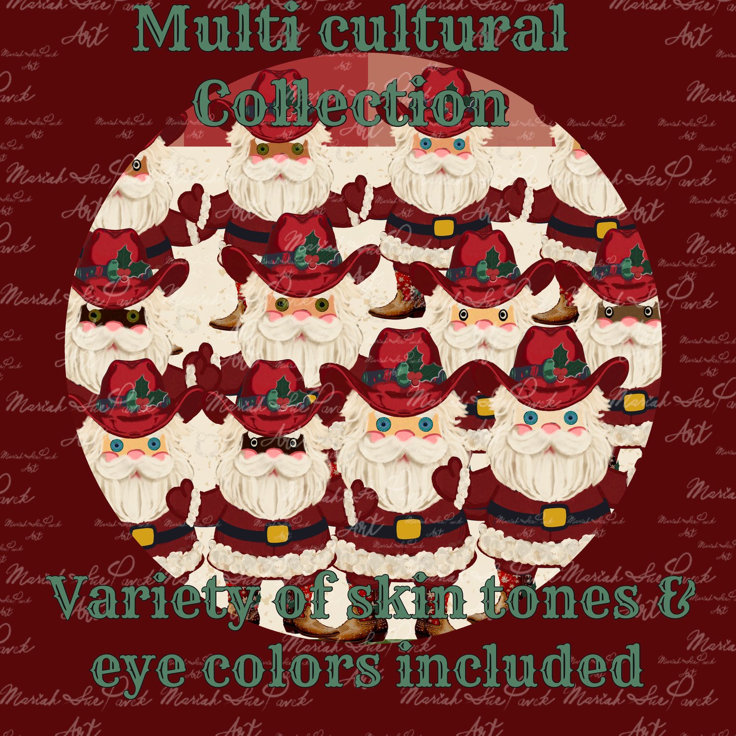 Ho Ho Howdy Multicultural Cowboy Claus Seamless Pattern Bundle