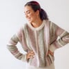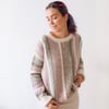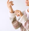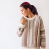 - The sweater is knit as a sequence of stripes in 5 colors: A (held double), B (held double), C (held double), A+B (1 strand each), A+C (1 strand each). The number and width of the stripes is completely adjustable. The full sample sequence is provided on the last page of the pattern. Feel free to use it or work the stripes of any width in any other order.