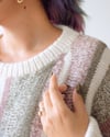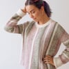 Vertical stripes of different colors dissolve in each other as if diluted by the gentle fog, making Evanescence Sweater look ephemeral and cozy at the same time.
