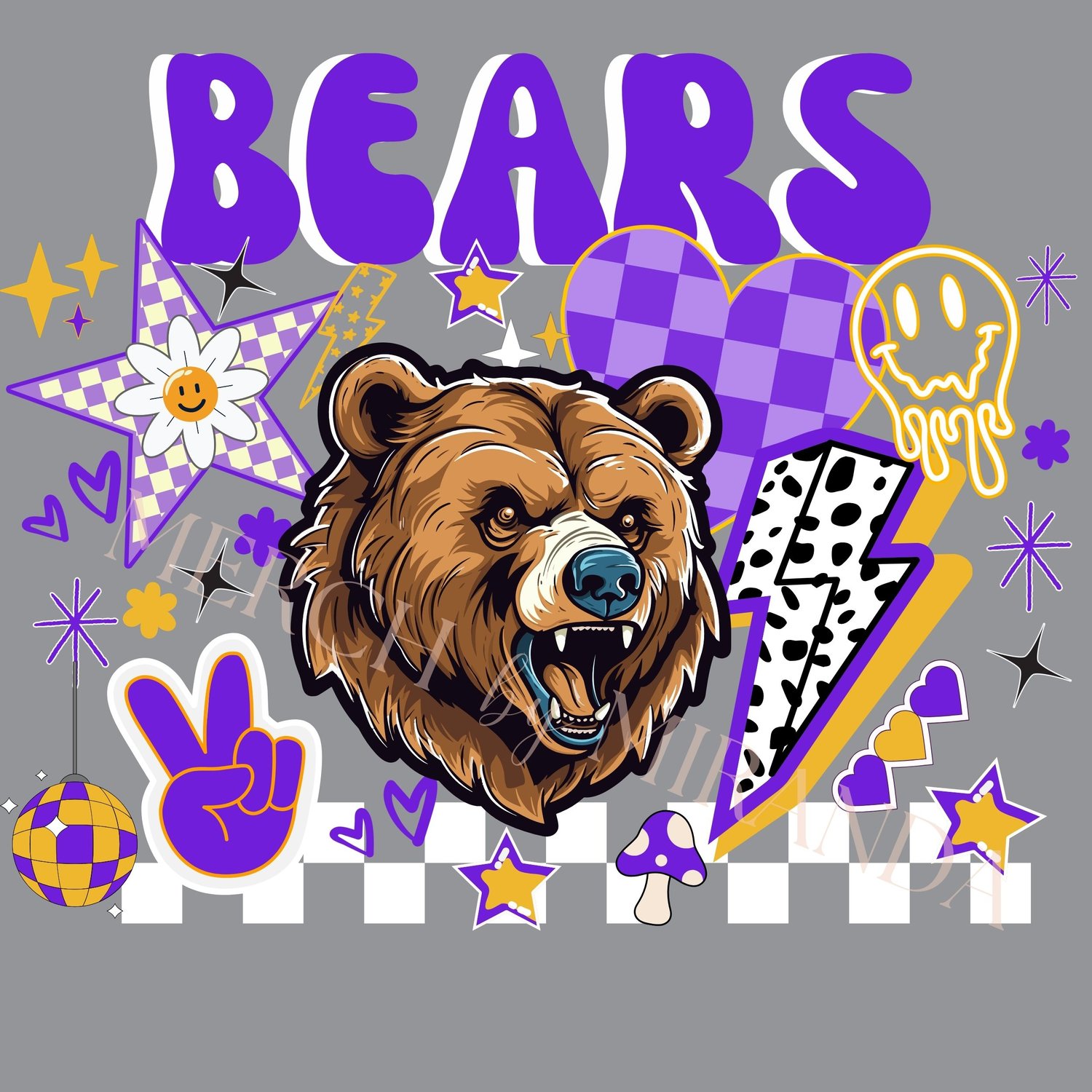Bear Mascot - Bears - Retro Groovy Theme - School Spirit - Digital Download