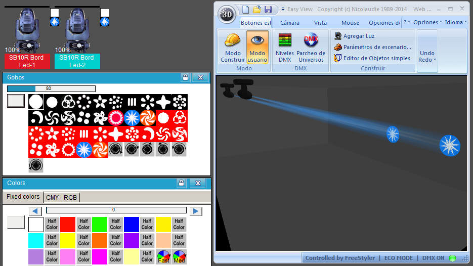 Esta Librería SSL2 está optimizada para trabajar con Magic 3d Easy View. Es decir para ver una representación 3D de las secuencias que estemos realizando con Freestyler, QLC+ o cualquier otro soft que se conecte con Magic 3d.