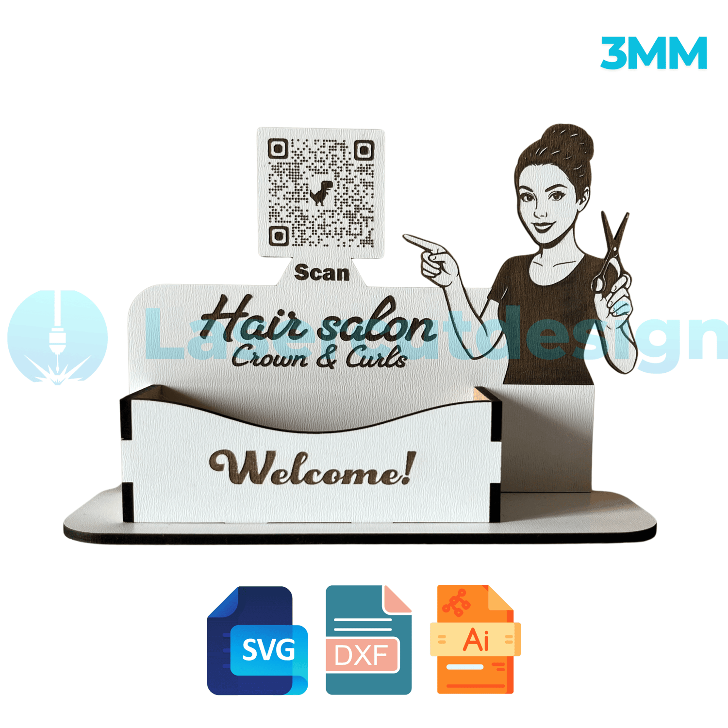 Womenâs Hair Salon Business Card Holder With Space For QR Code - Files For Laser Cutting SVG,DXF,AI Files 3mm
