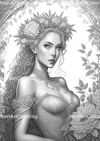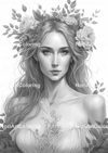 10 Floral Princess Vol 1 Coloring Pages | Printable Adult Coloring Pages | Download Grayscale Illustration | Printable