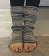These 4ply yoga socks are worked in rounds so no sewing up is required. They have ribbed ends with the remainder worked in easy stocking stitch, allowing the stunning striping and fair isle patterns that this yarn creates, to be the main attraction.