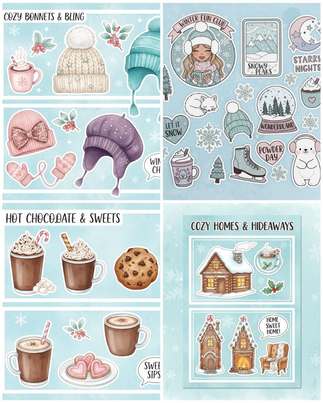 Get 4 sweet and warm pages of "Winter Stickers Designs-Ready to Print" with dimmensions 200*200 mm, PNG pages types.