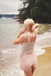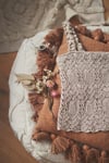 In this design I conjured everything that brings us to a paradise island. Smell the warm sand and fragrant suntan oils, taste a coconut water, hear the calm waves, and admire the texture of seashells… Monoi top is a truly romantic and textural summer piece of garment with a meticulously thought-out construction. Uniquely designed straps provide an undeniable charm and together with the built-in lining, make this top very comfortable to wear. All so that we can enjoy the summer to the fullest!