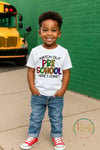 Bold, playful text with rainbow color outlines and a fun, modern font that’s perfect for back-to-school apparel and personalized gear.