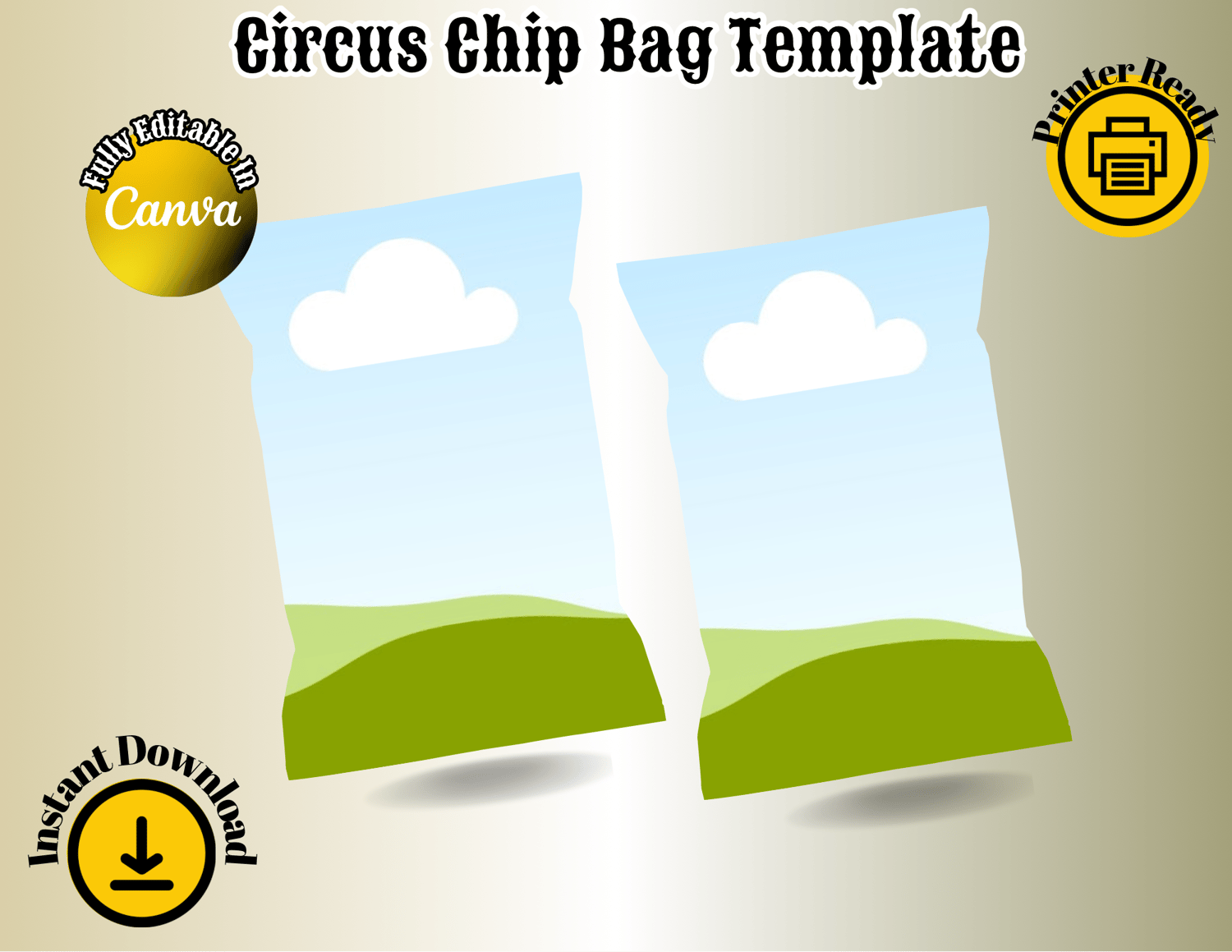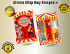 ✔ Editable Circus-Themed Chip Bag Template (8.5” x 11”)
