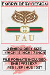 Gu.cci NCAA Florida Atlantic Owl Embroidery Designs, NCAA Florida Atlantic College Football Team Embroidery Files, Game Day Football Machine Embroidery, 3 sizes, Machine Embroidery Digital Download