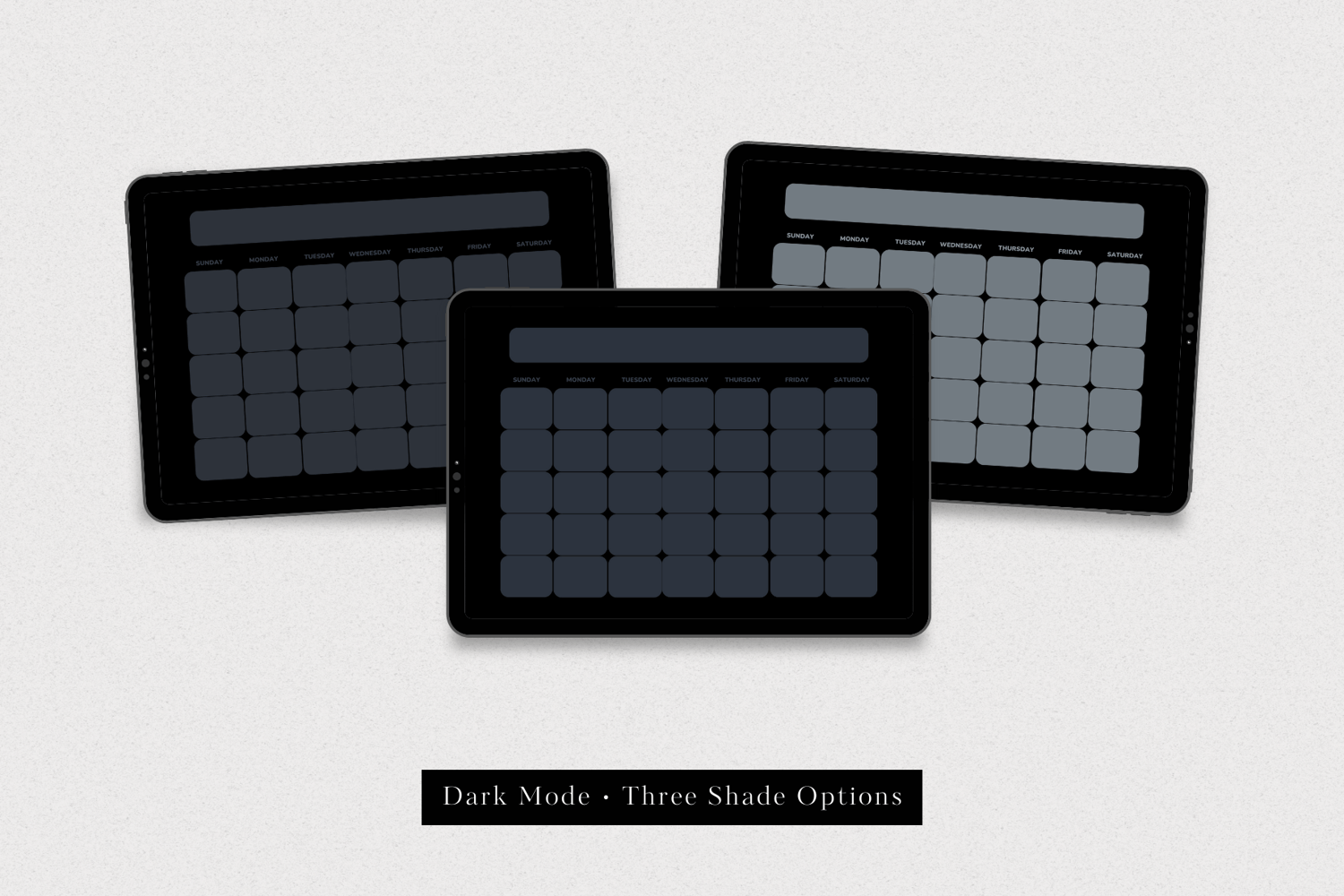 Dark Mode Landscape Undated Monthly Planner Template PDF