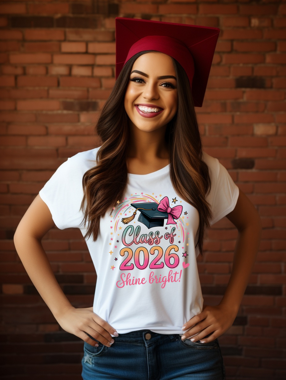 Class of 2026 Shine Bright Graduation PNG | Cap and Gown Digital Design | Senior 2026 Graduation Shirt PNG | Instant Download