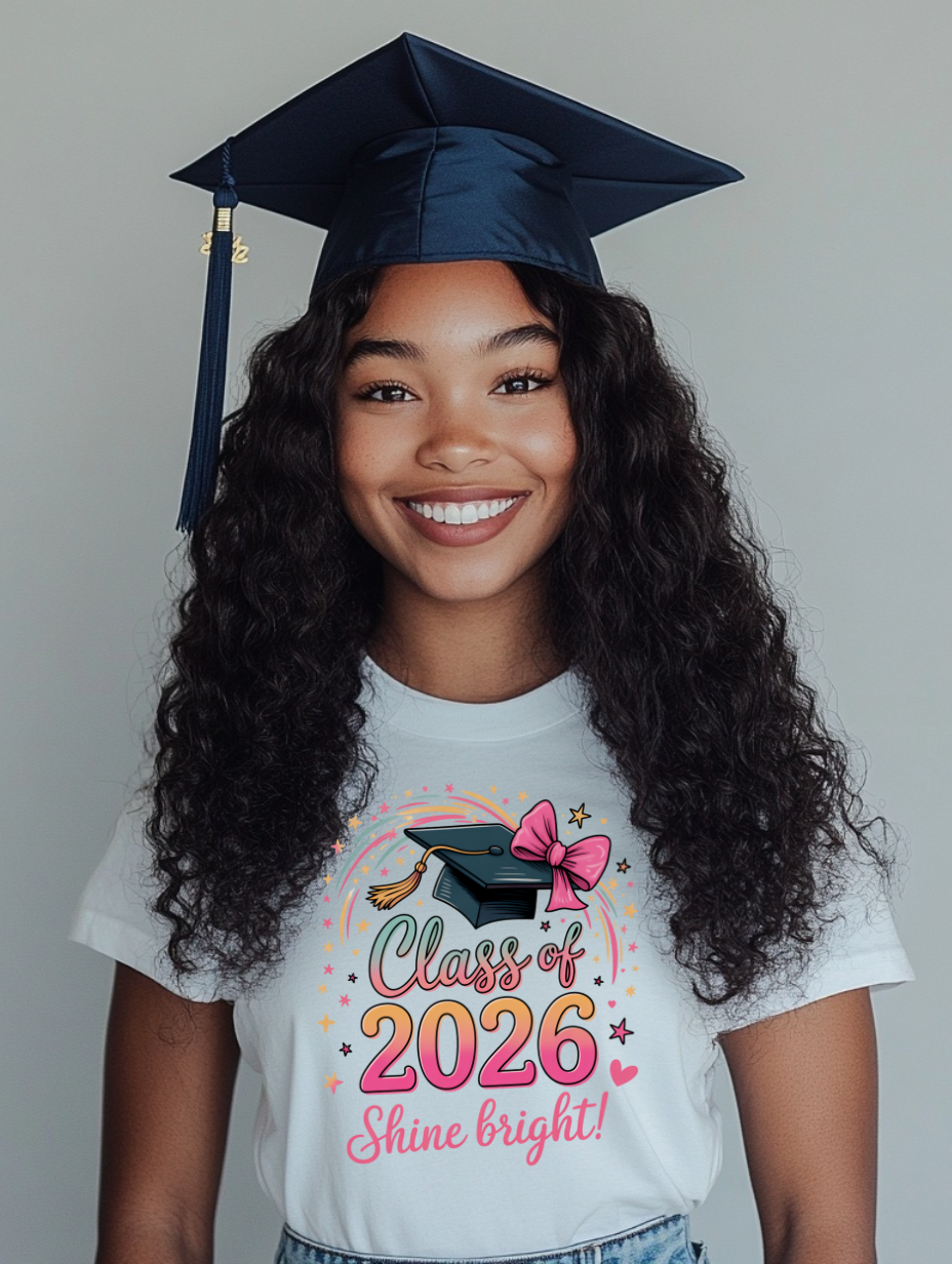 Shine bright, Class of 2026 ✨🎓 This fun and colorful design is perfect for senior shirts, graduation parties, banners, tumblers, and more! Celebrate your grad with this high-quality digital PNG.