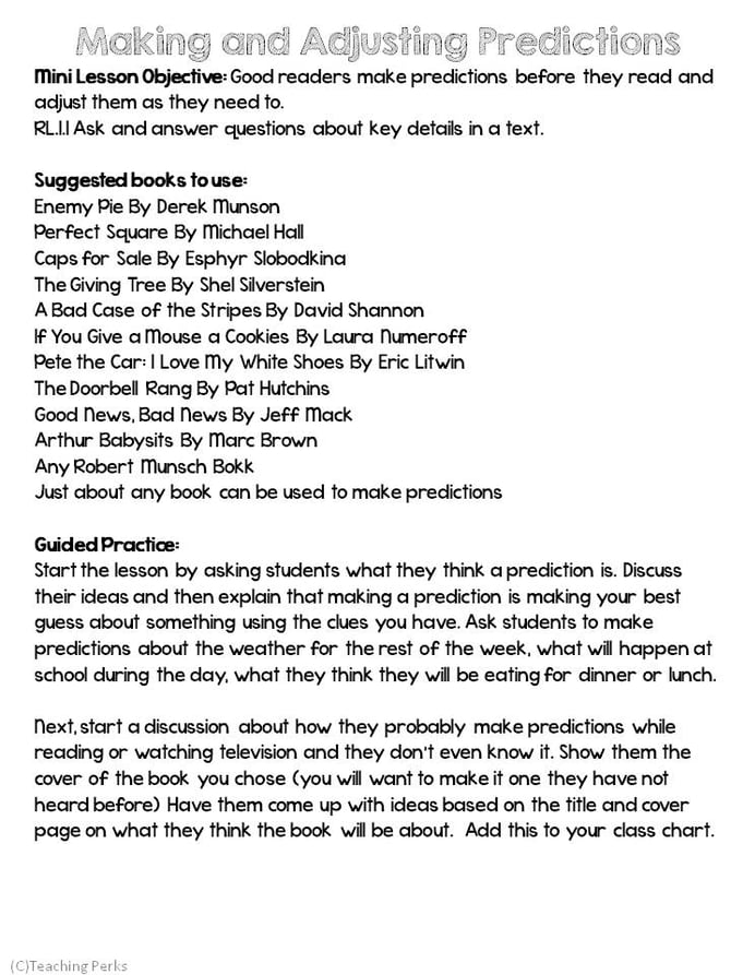 making and adjusting predictions {RL.1.1}