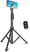 Sensyne 62" Phone Tripod & Selfie Stick, Extendable Cell Phone Tripod Stand with Wireless Remote and Phone Holder, Compatible with iPhone Android Phone, Camera (Black)