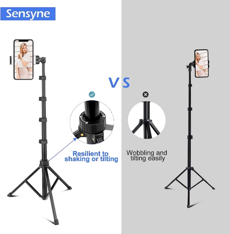 - Versatile 62'' Phone Tripod: Sensyne's updated tripod combines the function of phone stand with a selfie stick. Perfect for taking selfies, Photographers, Youtube, vlogging, live streaming and Family Gathering.