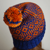 This pattern is worked in the round from the bottom up. A thick ribbed brim, meant to be doubled for extra warmth, leads into the colorwork pattern. The colorwork motifs are charted only.