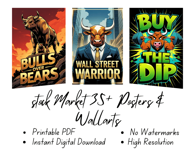 Elevate your workspace with this exclusive collection of 35+ Stock Market Posters & Wall Arts, designed for traders, investors, and finance enthusiasts. Each piece blends bold typography, motivational quotes, and market-inspired graphics, perfect for creating a powerful trading desk, office, or study vibe.