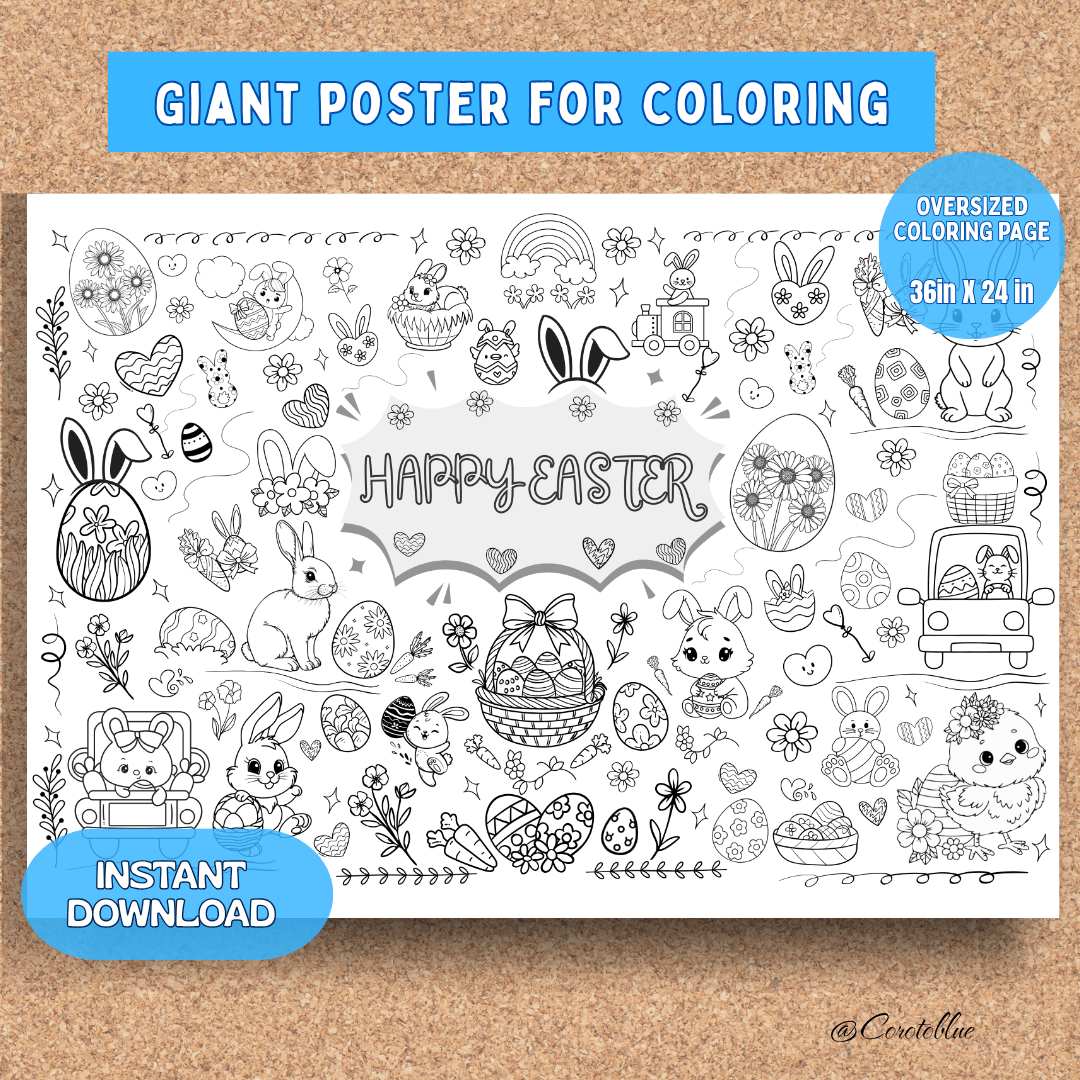 Easter coloring poster / giant Easter coloring poster / large Easter coloring page