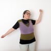 The eerie and slightly spooky music and lyrics of Stripsearch by Faith no More work well with my emotions during the first couple of months of lockdown here in Milano, right next to the center of the Italian Covid-19 outbreak. I found knitting on this vest relaxing. The strip motif kept the interest up while not making the knitting too complicated. The vest is knitted top down from the shoulders, the front has a taller striped section, while the back has some light waist shaping (no shaping is present on the front). Due to the top down construction, feel free to make the vest longer or shorter. The yarn I used is Nordica by Sesia, a superwash pure merino which relaxes quite a bit on the first wash, so keep this in mind if you use the original yarn. Since the vest was created with leftovers, you can feel free to use a single color, or to develop the stripes differently. The vest is shown in medium size and I used all of the yarn with no leftovers whatsoever on 3 balls of color A; for this size I listed 4 balls.