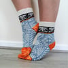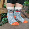 Doodling with leftover sock yarns and combining mosaic patterns is an easy and fun way to create colourful, one-of-a-kind socks. Use just two colours or four or even six, work more or less mosaic pattern repeats, all is up to you!
