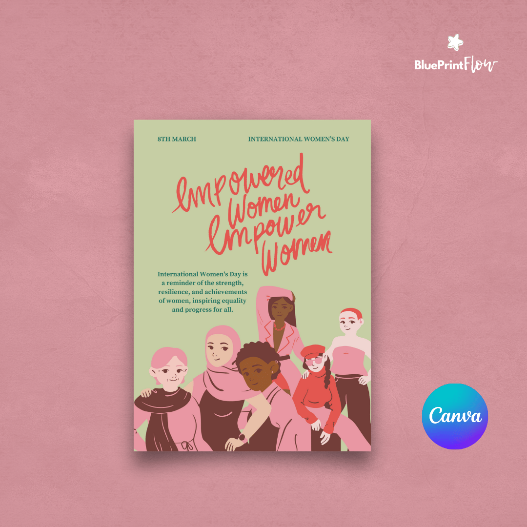 [FREE] Green Pink Red Theme International Woman's Day IWD Card Flyer Canva Template Design