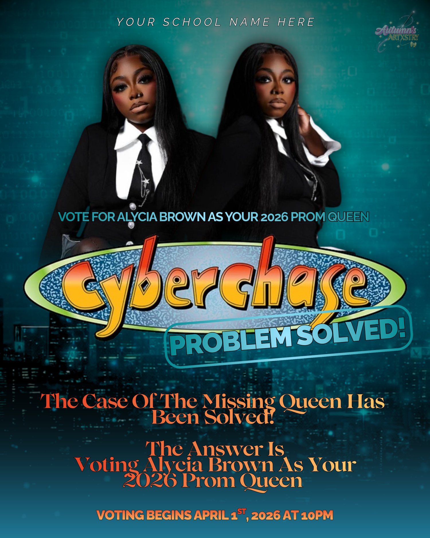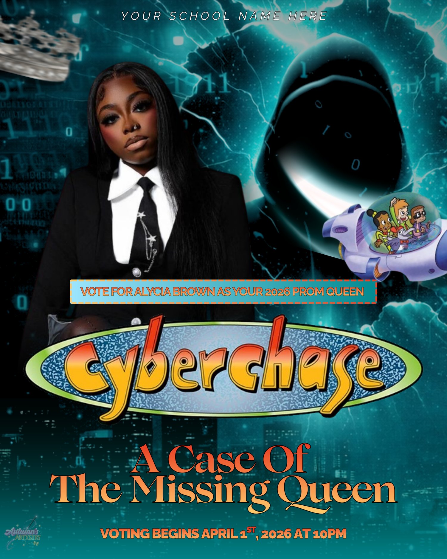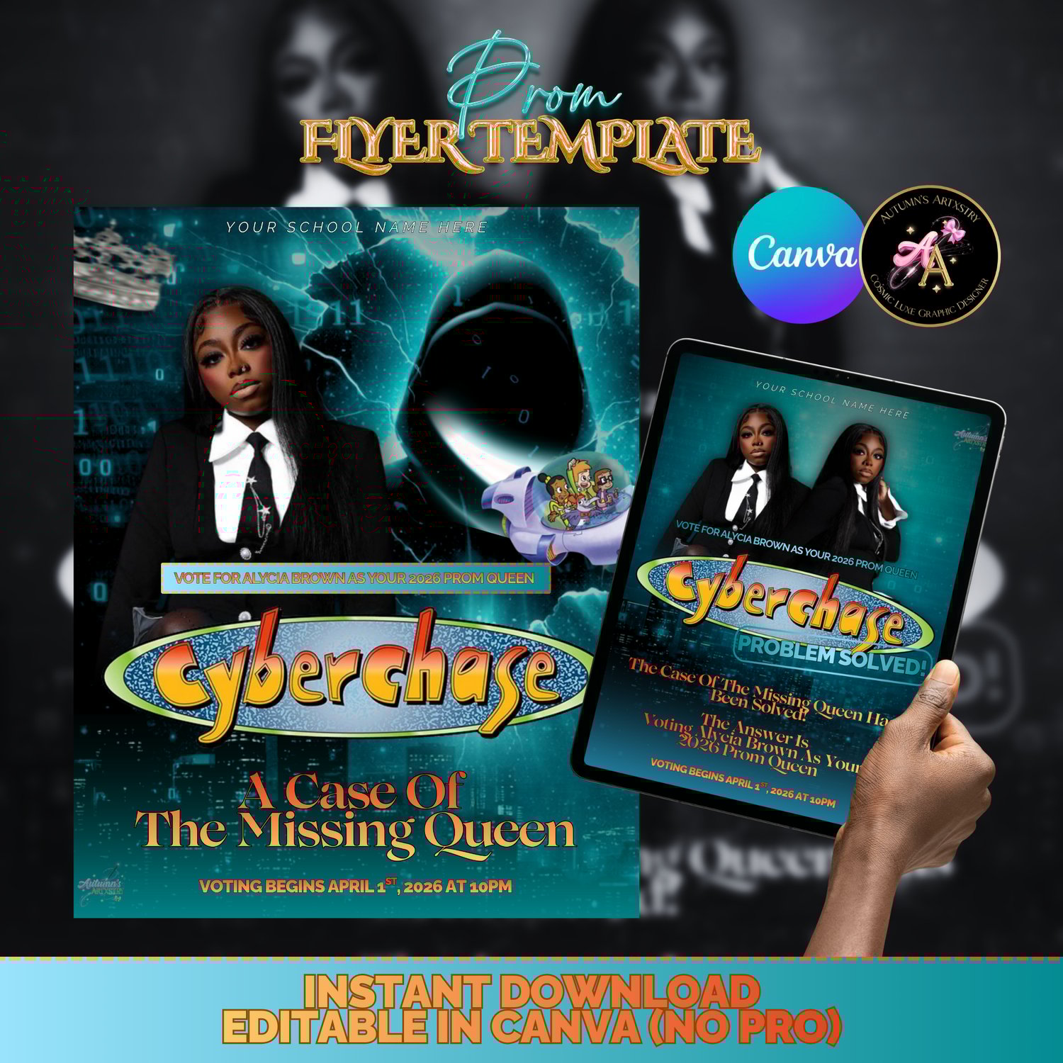 Prom Queen Campaign Flyer Canva Template Bundle | Cyber Chase Theme Prom Election Poster | Editable Canva Campaign Flyer Set