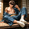 日本の正月をテーマに、着物を着用している男性を、キャラクターごとにお任せ作成しました。男らしいキャラクターの魅力を思い切って表現しました。