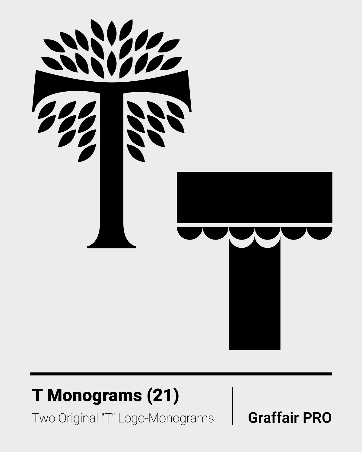 T Monograms (21): The 21st set of two original "T" logo monograms, included in the "1050 SVG Monograms" super bundle, which also features an Index catalog.