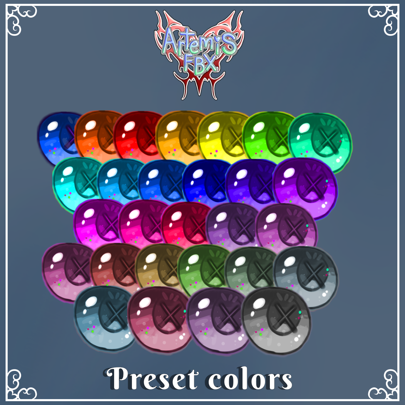 You get a transparent PNGs of the eye textures, there over all together 62 textures of a variety of colors! Fun to mix and match with and can be easily edited onto any head base! And there's emission/glitter maps!