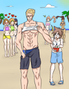 Ever the magnanimous alpha male senpai, Keisuke imparts deluded dating wisdom to his kouhai at the beach.