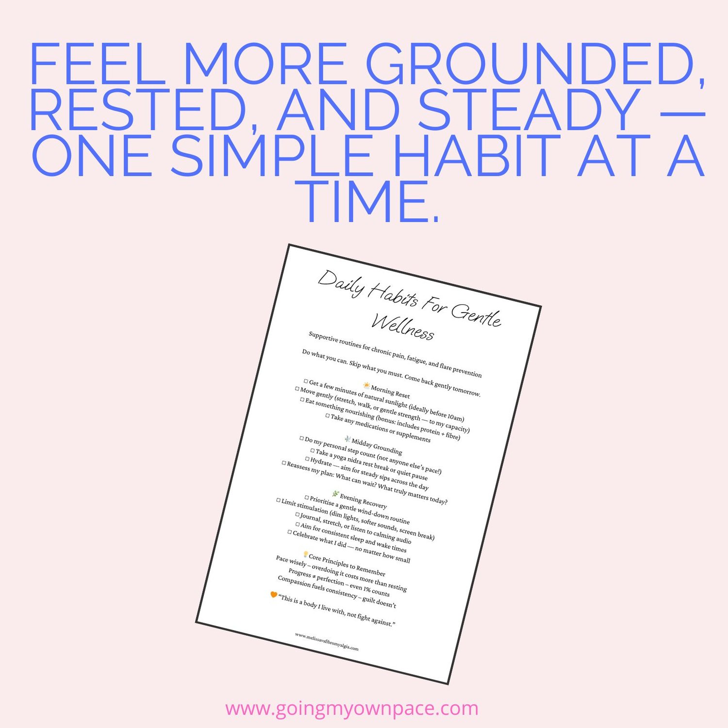 A downloadable, printable Daily Habits for Gentle Wellness checklist, including:
