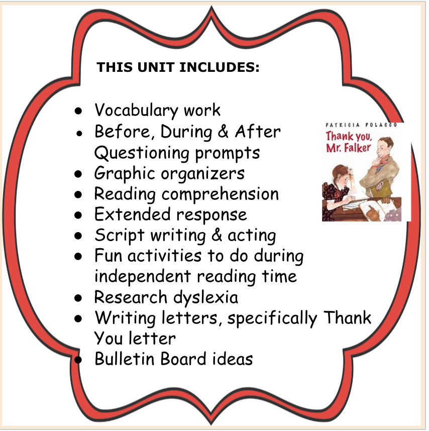 This ready-to-use unit of study for Thank You, Mr. Falker by Patricia Polacco includes:
