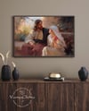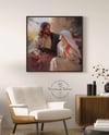 In this digital painting, Jesus and Mary of Bethany are depicted in a stunningly beautiful painterly style that emulates the look and feel of traditional oil painting. The colors are rich and vibrant. The brushstrokes are thick and expressive, with a sense of texture that brings the painting to life. Jesus is shown with a serene expression, gazing intently at Mary, who is depicted with a look of deep love and devotion. Unique painting not found anywhere else. Excellent gift for all occasions.