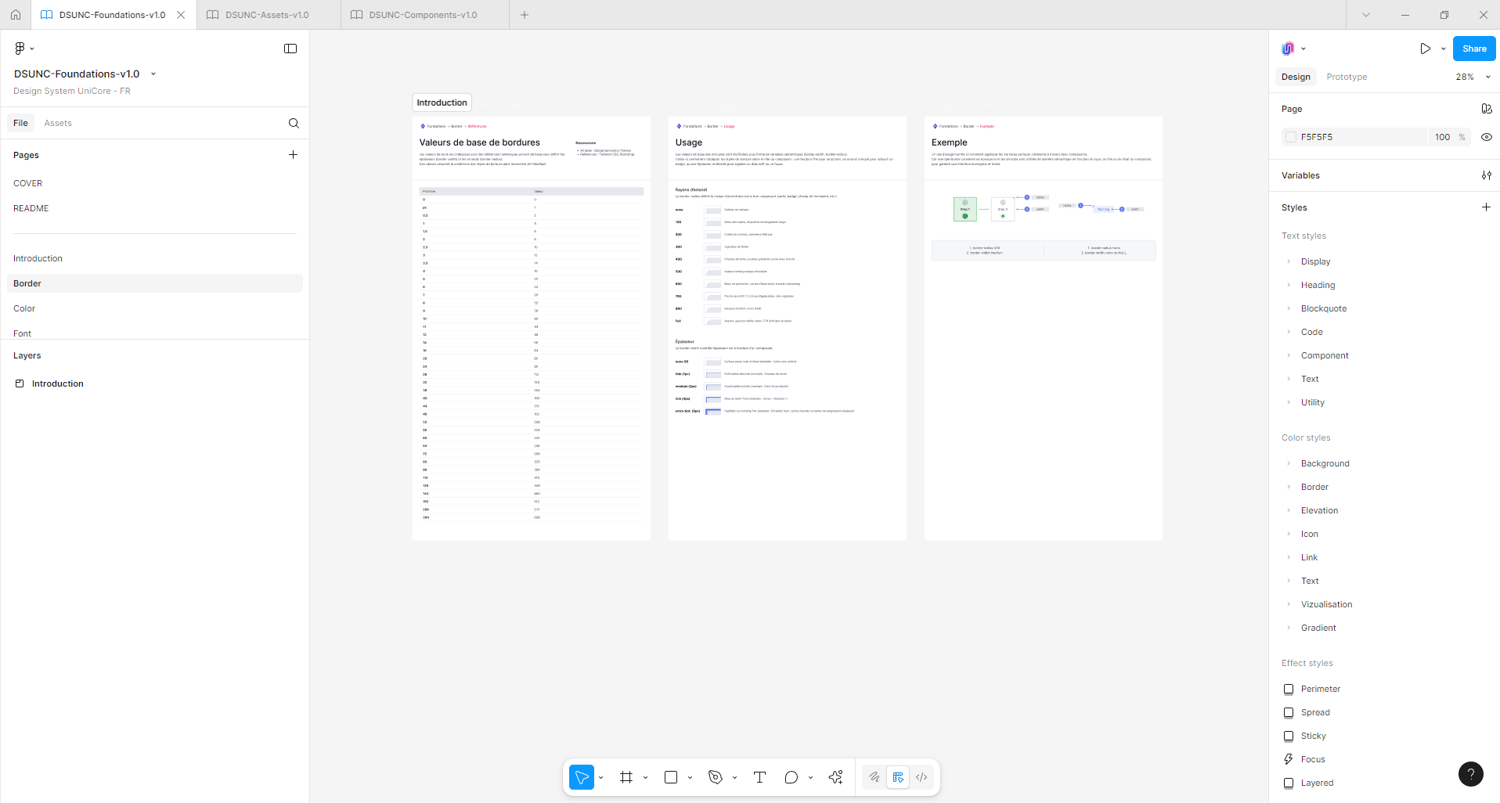 Pour profiter pleinement de ce Design System, il est indispensable de disposer a minima d’un compte Figma Professionnel, afin d’accéder à toutes les fonctionnalités nécessaires à son bon usage (styles partagés, variables, permissions, etc.).