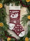 This standalone pattern is the companion to the original Woodland Stockings pattern and the Woodland Stockings: Big Animals pattern, which each feature four different animal designs as well as variations in the cuff and snowflake design. The Woodland Stocking patterns blend harmoniously, so that you can knit each pattern independently or mix charts and cuffs to create the perfect stockings for you and your loved ones.