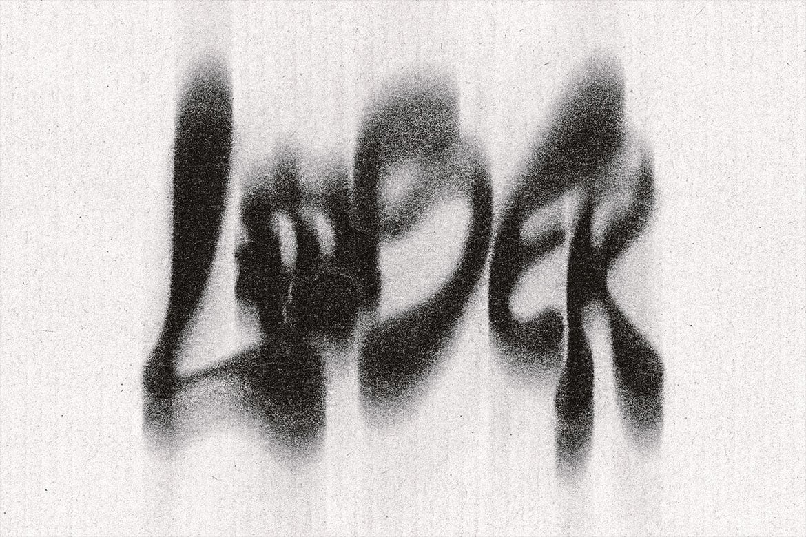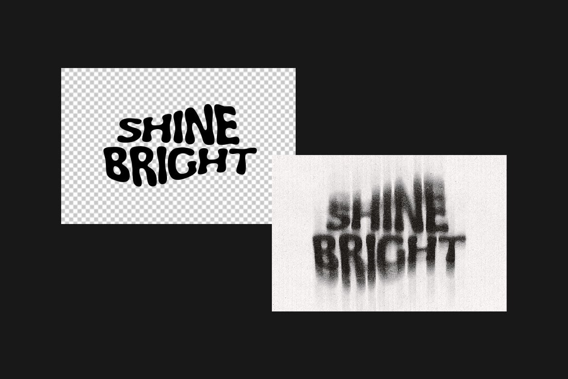Blurred, faded style that creates a sense of motion or fading. The text appears as if it’s been sprayed or misted onto the surface, with a gradual transition from solid to fuzzy, which gives it an almost ethereal or dreamlike quality.