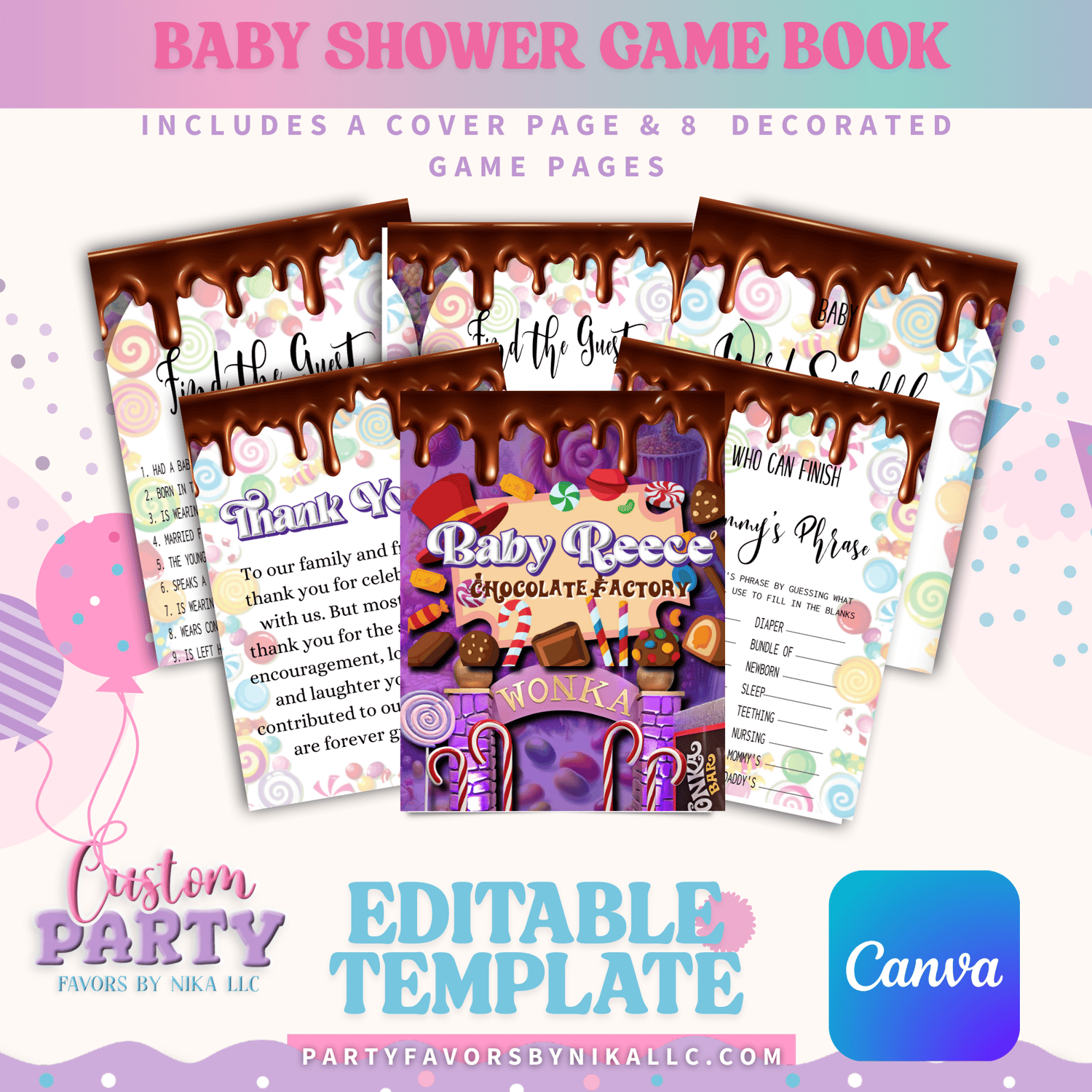 WILLY WONKA BABY SHOWER GAME BOOK TEMPLATE