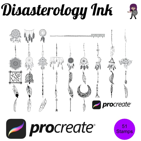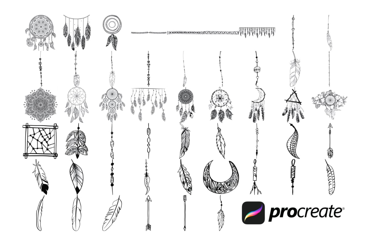 Dreamcatchers Set 2 Procreate Brush Stamps, 51 Dream Catchers