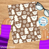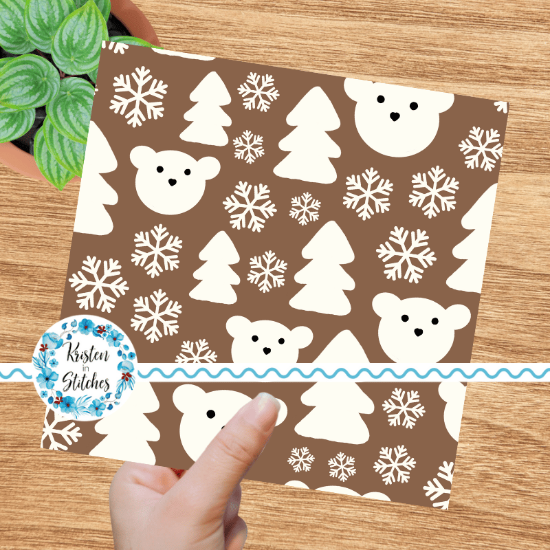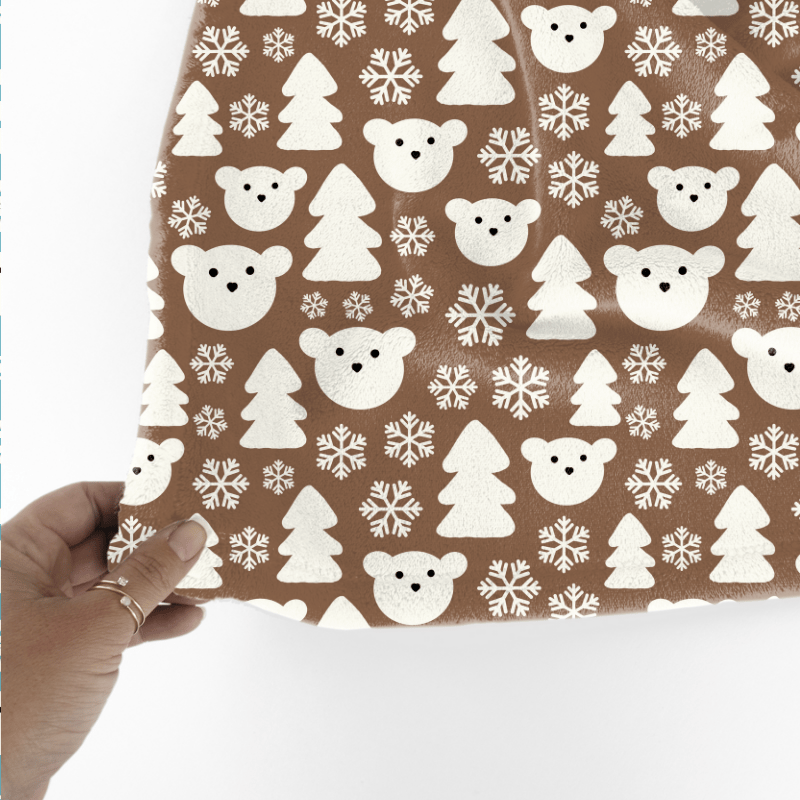 Sweet polar bear faces, pine trees and snowflakes.