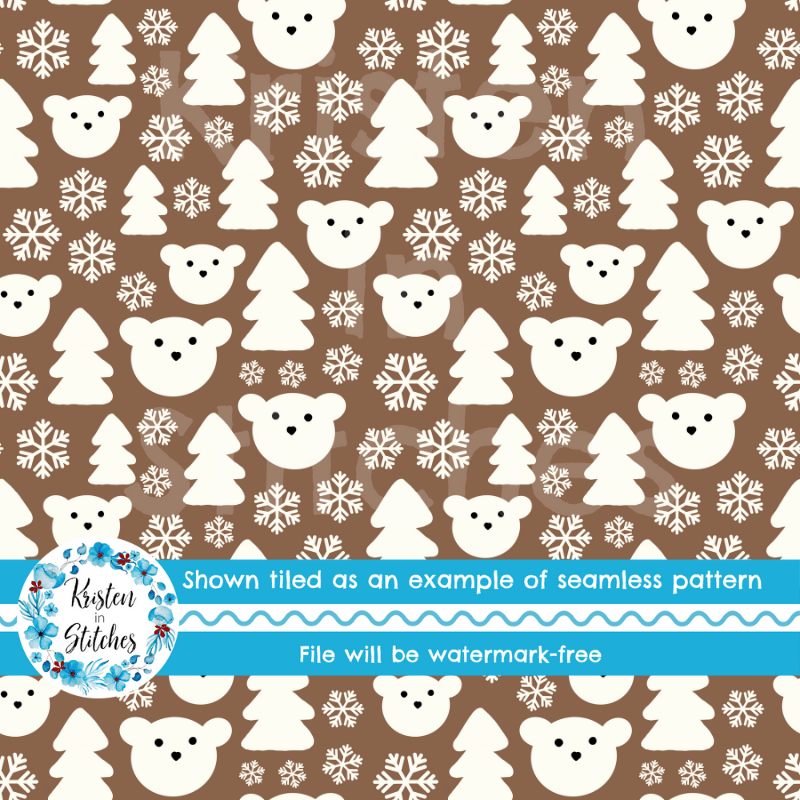 Snowy Polar Bear Forest Seamless Pattern, Warm Brown